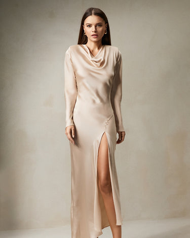 Rochia Infinity din satin este alegerea perfecta pentru un look elegant si rafinat. Cu o croiala lejera ce imbratiseaza delicat silueta, aceasta rochie are o crapatura pe picior ce adauga un plus de senzualitate. Fermoarul ascuns la spate asigura o fixare impecabila, oferindu-ti confort si libertate de miscare.