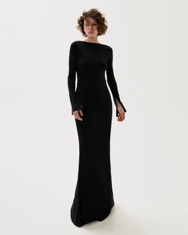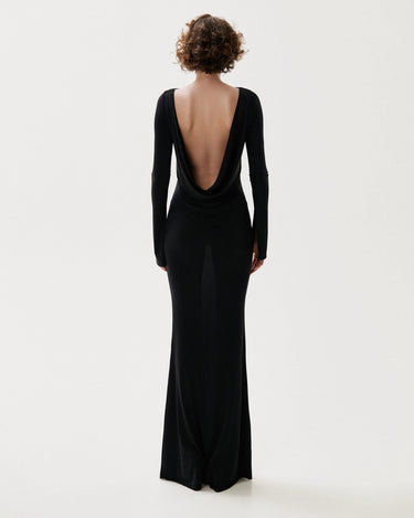 Rochie Maxi cu Spatele Deschis si Drapat, Neagra