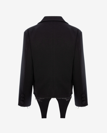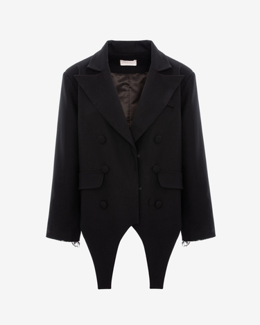 Sacoul oversized cu portjartier, negru, este o piesa statement ce imbina senzualitatea cu eleganta avangardista. Croiala ampla si liniile bine definite ofera o prezenta impunatoare, in timp ce detaliile inspirate din portjartier aduc un accent modern si indraznet. Versatil si sofisticat, poate fi purtat atat ca piesa principala, cat si in combinatie cu articole minimaliste.