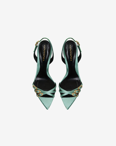 Sandalele din satin Ivy, verde menta, sunt o piesa statement din linia premium Ginissima, prezentata la Milano si New York Fashion Week. Cu un calapod nou si tocuri subtiri, combina perfect eleganta si confortul. Accesoriile stralucitoare si satinul rafinat le transforma intr-o alegere sofisticata pentru orice ocazie.
