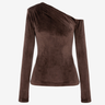 Topul mulat pe un umar Chocolate Blankie imbina minimalismul cu rafinamentul contemporan. Confectionat dintr-un material moale, cu finisaj catifelat, topul urmeaza linia corpului, oferind o senzatie placuta la purtare. Decolteul asimetric si drapajul subtil din zona umarului adauga un accent elegant si modern, transformand piesa intr-un element esential pentru tinute sofisticate.