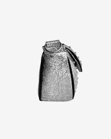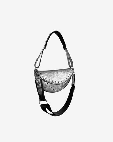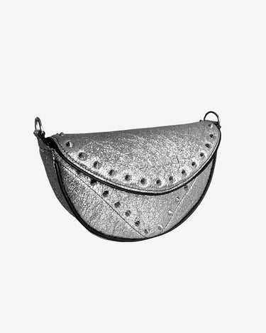 Borseta de piele "Moon", argintie, este un accesoriu versatil si elegant, perfect pentru a completa orice tinuta. Designul sau multifunctional permite adaptarea la diverse stiluri si personalitati. Borseta dispune de doua curele: una scurta din piele pentru a fi purtata ca geanta de mana si una lunga, reglabila, realizata dintr-o combinatie de piele si bumbac, oferind flexibilitate in purtare. Dimensiunile sale compacte si designul modern o fac ideala pentru utilizarea zilnica sau pentru evenimente speciale.