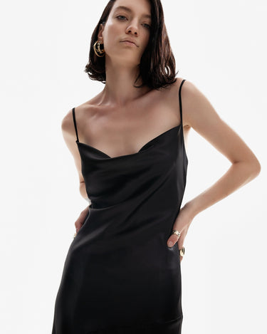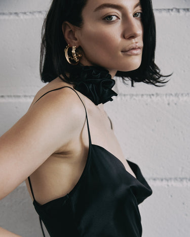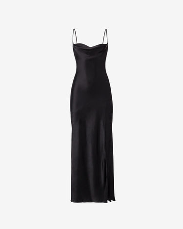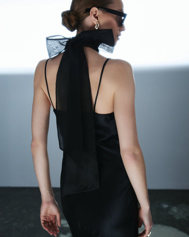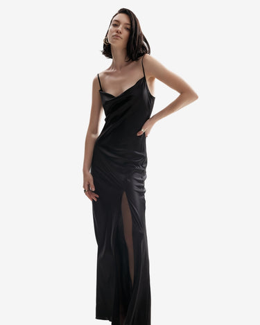 Rochia Lunga din Matase, Neagra, este o piesa vestimentara eleganta si atemporala, ideala atat pentru evenimente speciale, cat si pentru iesiri romantice. Fanta indrazneata si croiala care accentueaza contururile naturale confera un aer sofisticat si feminin. Matasea sculptata si spatele bine definit fac din aceasta rochie o piesa esentiala in garderoba oricarei femei.