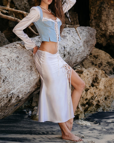 Fusta Midi din Satin Carmen, Alba