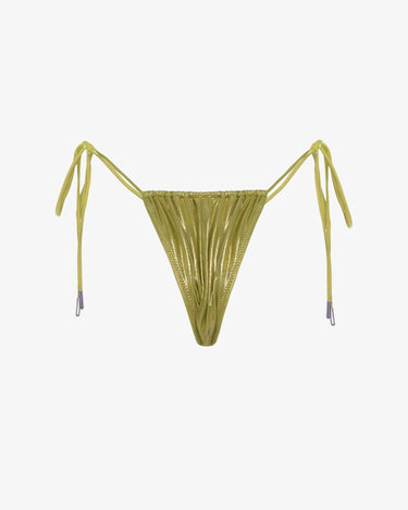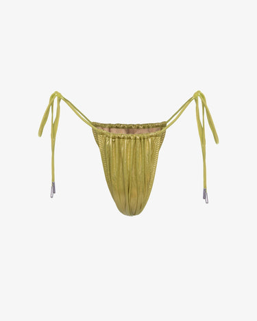 Straluceste intr-un look fresh si indraznet cu slipul de baie "Metallic Green". Materialul cu nuante metalizate transforma orice zi la plaja sau piscina intr-un moment de glamour, iar tonul vibrant de verde completeaza perfect vibe-ul de vara. Designul ajustabil, cu snururi laterale, iti permite sa creezi fit-ul ideal pentru confort si stil.
