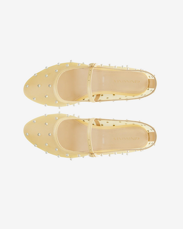 Balerini Mesh din Piele Naturala "Zoe", Galben Pal