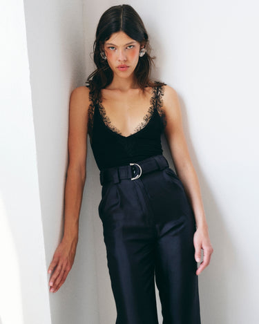 Body Isabel, Negru este conceput pentru o silueta slim si este accentuat prin drapajele laterale care modeleaza subtil forma corpului. Textura fina si elasticitatea materialului ofera confort si libertate de miscare, transformand aceasta piesa intr-o alegere sofisticata pentru tinute de seara sau stylinguri contemporane.