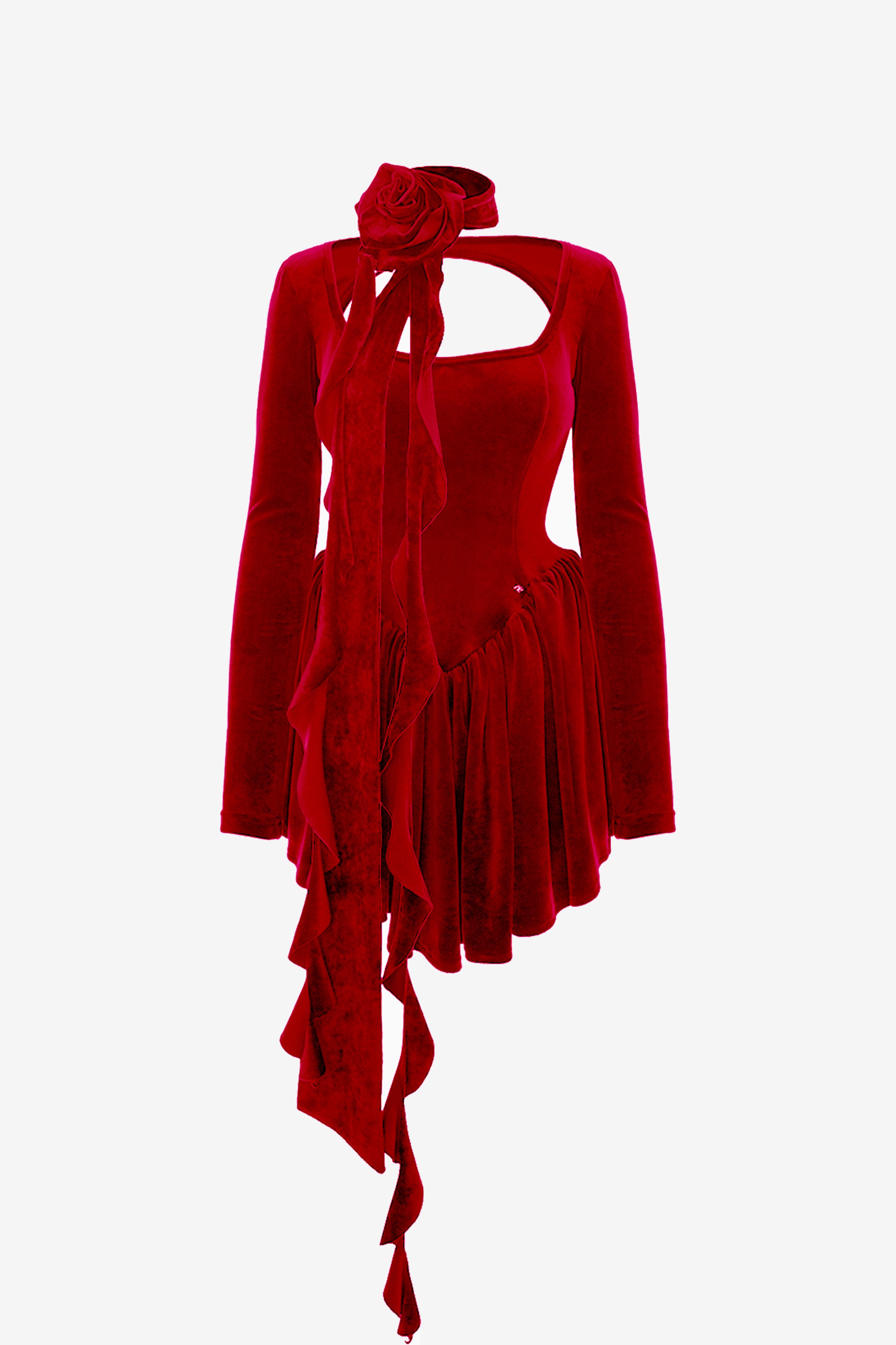 Rochia din catifea Velvet Rose rosie adauga un plus de rafinament garderobei tale, combinand eleganta clasica cu un design modern. Corpul structurat si soldurile exagerate evidentiaza talia, in timp ce fusta incretita adauga miscare si fluiditate. Accesoriul detasabil in forma de floare din catifea transforma rochia intr-o piesa versatila, perfecta pentru ocazii speciale.